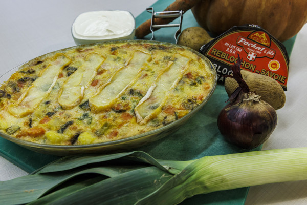 1kg à 1,5 kg de potiron (ou autres courges de saison adaptées à la soupe), 1 chèvre frais, 1 gros oignon blanc, 4 pommes de terre, 1 bouillon cube, Huile d’olive, Sel et poivre de Sichuan, Noix de muscade.