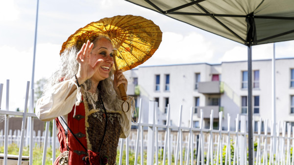 Pour la compagnie, c'est aussi un temps particulier, un moment d'échange privilégié : pendant le confinement, nous avons développé d'autres formes d'animation pour amener la culture vers le public. Nous avons créé les mascarades, des parcours déambulatoires dans les rues. On s'est déplacés en rosalie sur les bords de mer, et même dans des bulles géantes dans les maisons de retraite ! C'est super de voir les gens sourire